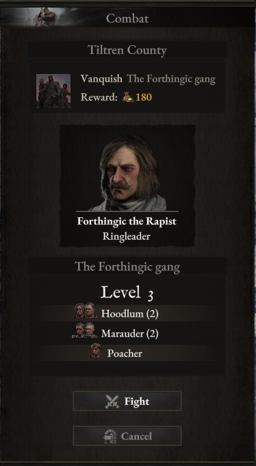 Some fun things you can do with your party are you can capture animals and other men. Captured animals always turn to your side, which allows you to use them in battle. They gain their own XP, and skills when leveling up – if they live long enough, that is! Captured men you can either turn in for the bounty, or try to recruit, and this can be a great way to expand your group without having to spend too much precious gold. The only problem is that each extra hand in your group will require more food each day. This can escalate very quickly, especially if you manage to capture a whole herd of wolves at the same time. So be prepared and keep your pantry stocked with food.