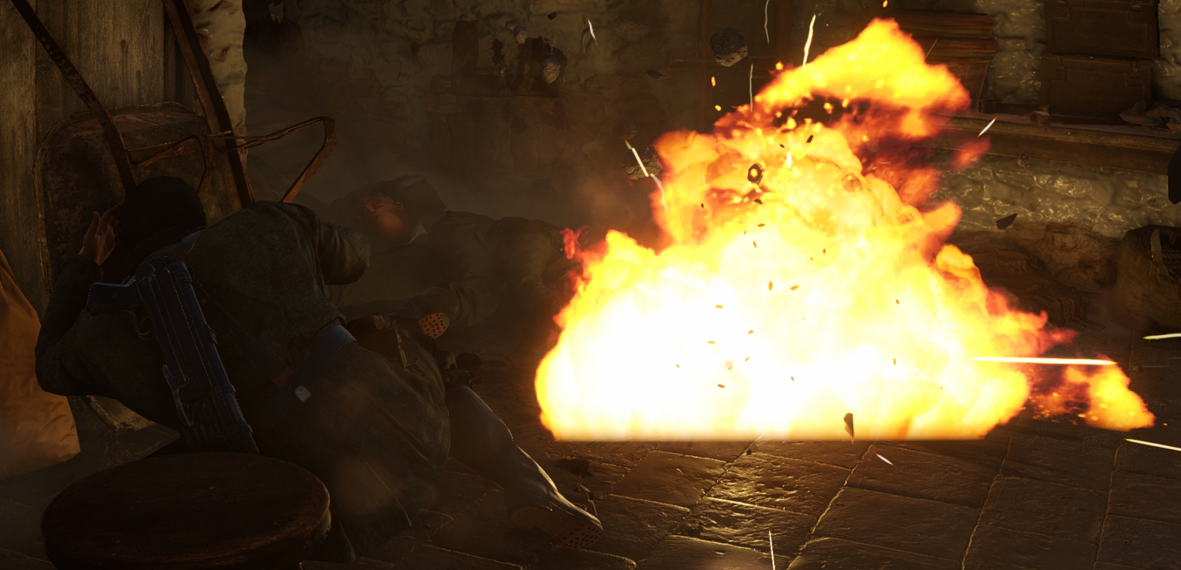 Another thing that made me think that this game was perhaps a little phoned in, is that so much stuff just feels janky. Animations look odd at times, and controlling Karl has become worse, and much more fiddly. He constantly tries to stick to things, and often you can’t jump over small fences, just stuff like that. The death cam has also become glitchy, with bullets bouncing around in weird ways, and the ragdoll effect has been made goofy looking. Often now, when you plug someone, he will fly away and do several pirouettes in the air before landing on the ground. I also have serious sound issues in the game. Music is fine, no issues there, but often explosions, and environmental effects will just not play. I can see huge cannons fire but hear no sound at all, it does take you out of the game when it happens.