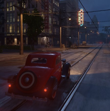 Visually Mafia looks great, at least lighting, mood, atmosphere, and the general models of cars, houses, and so on. It all looks very authentic, but, sadly, the engine used is very aggressive in the culling of models. It makes random stuff very blurry for some reason, and the pop-up can be noticeable at times. The animations during cutscenes are great, however, during gameplay, well, I would say they are okay too, but the game is riddled with visual glitches when it comes to certain animation stuff, especially when it touches ragdoll effects. Bodies constantly end up in goofy positions, which did take me out of the game a couple of times – mostly with me having a chuckle in a supposed tense situation. Music and sound are good too, it’s nothing too out there exceptional, it’s what is expected coming from AAA gaming. So I can’t complain about anything here. The radio station music seems to have a good selection too, fitting the time period.