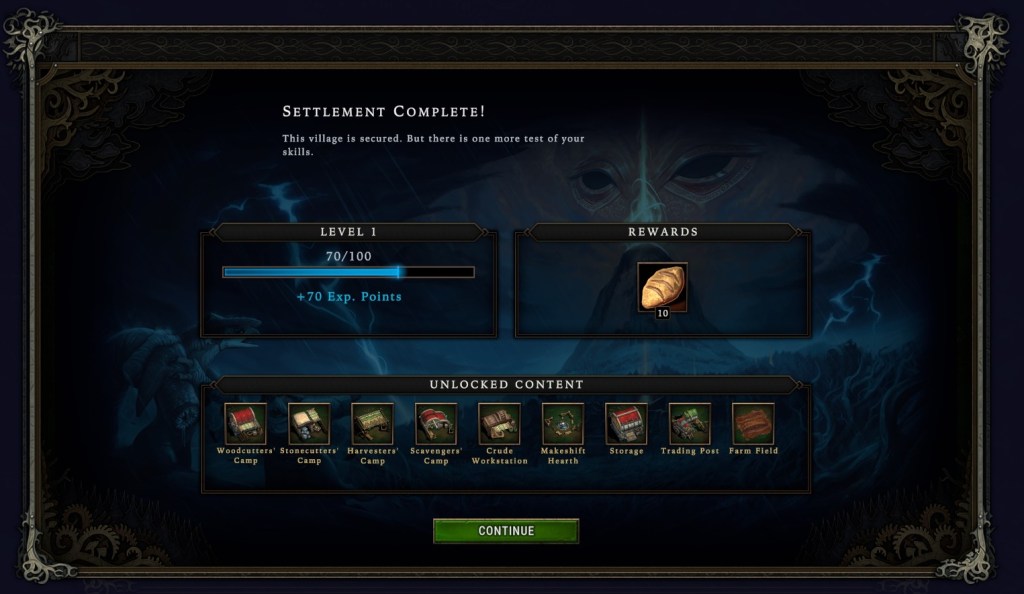 The game consists of two segments. The strategic map where you build up your citadel through resources gathered, and XP gained for your level. Here you also chose where to colonize, and what kind of difficulty you will be facing. Going by the look of the map there will be several biomes to pick from, but in the demo only the green forest area was available. I assume biomes later down the line will be much harder to colonize but will reward you with better XP and artifacts. When you have picked where to build, you are transported to the true game – the actual city building.