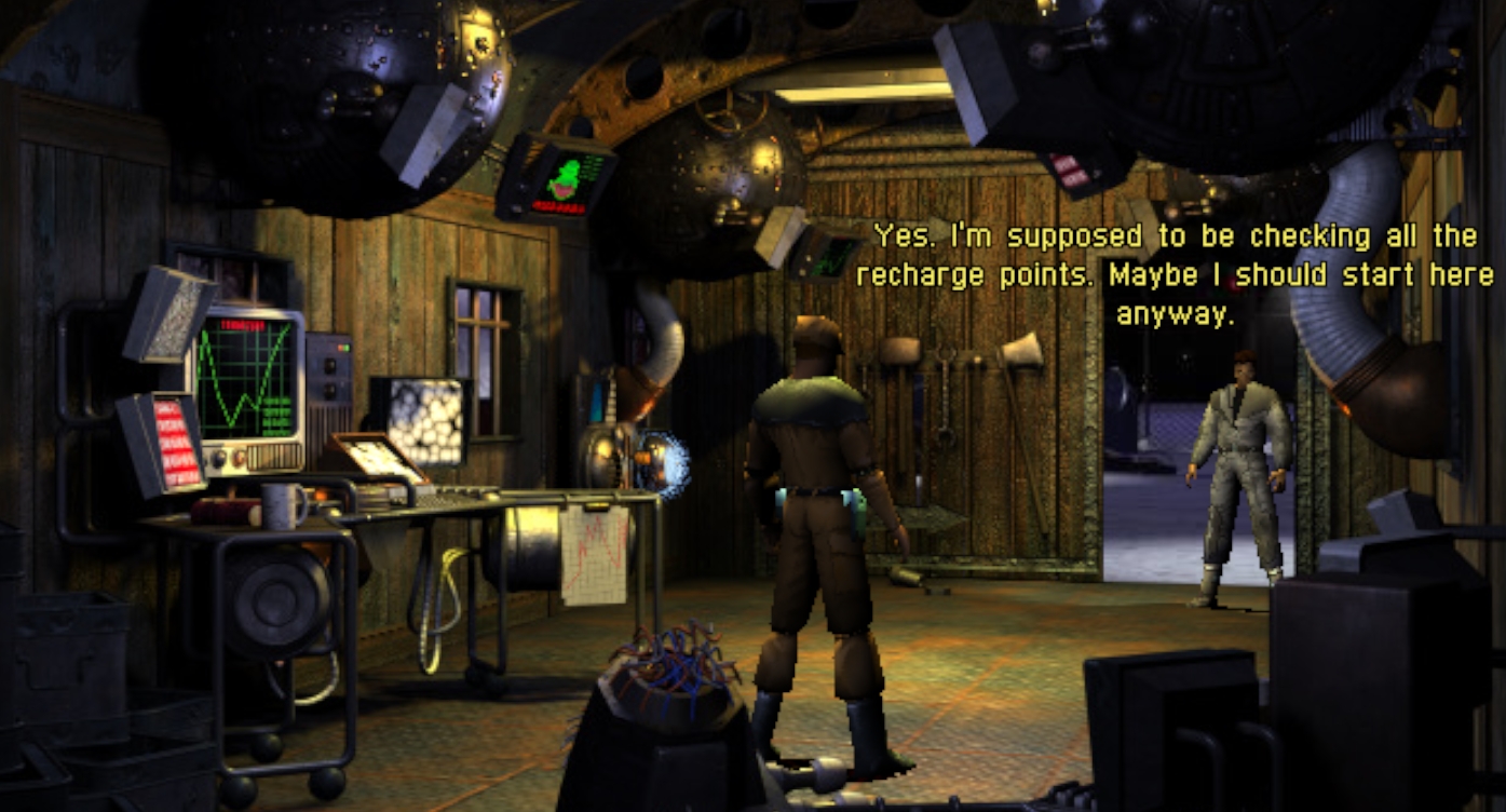 Visually there are no denying that In Cold Blood looks old with low poly models, and static environments. However, nostalgia is a hell of a thing, and these pre-rendered backgrounds, together with somewhat stiff cartoon-like animations make for a nice visual treat personally. Highly subjective of course, as with most things, but I found the graphics interesting and pleasant to look at throughout the game. The backgrounds vary a lot, and some areas do truly look extraordinarily cool, like right out of a sci-fi-themed spy movie. All the different missions will offer up new locations, and I don’t think anything was repeated, so you will be seeing a lot of fresh locations during your 9-10 hours in this game. The sound is a bit of a hit-or-miss, though. While I think the voice acting is superb, especially for the posh stiff-upper-lip British agent man you play as, the environmental sounds and music are lacking. They do exist, but both are very spartan I noticed. Many times you will be walking around in total silence, and that gets weird when you realize that some areas feel like it has missing sound/music. It drags down the atmosphere a little, however, the story, and the visuals make up for it.