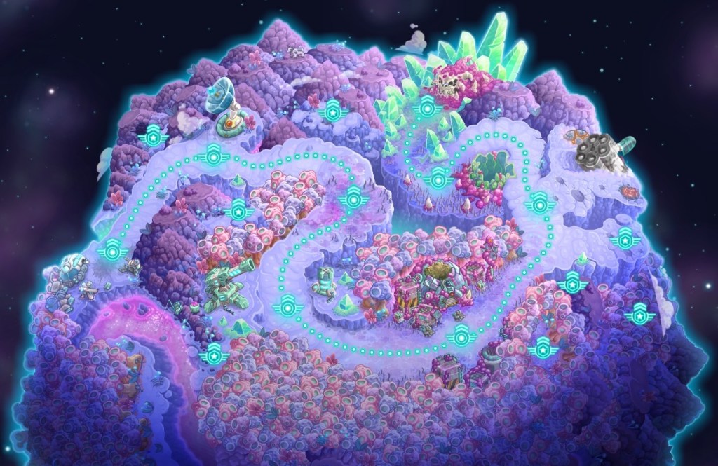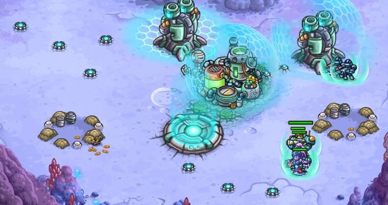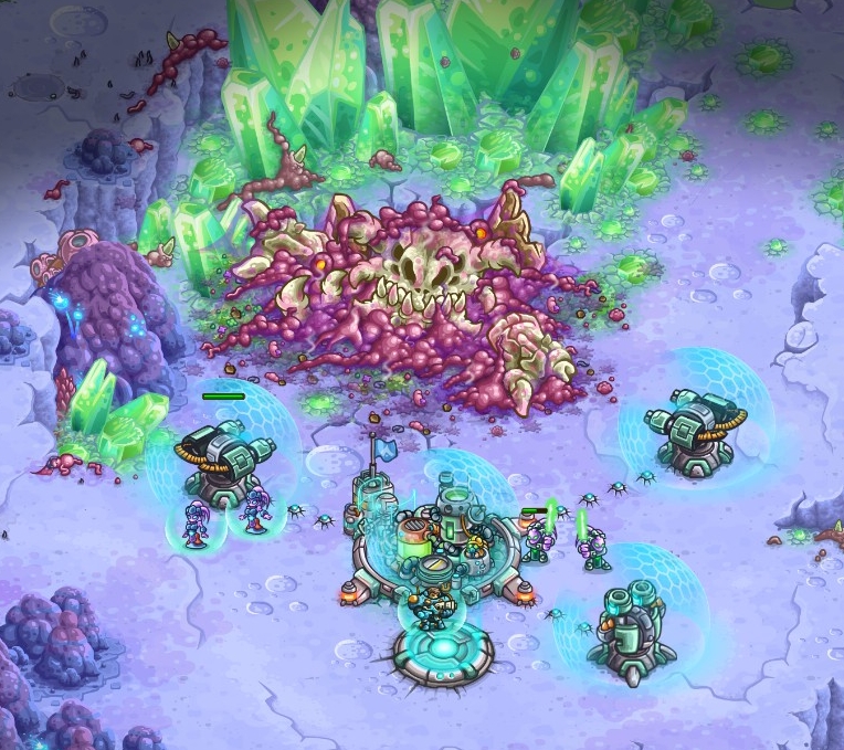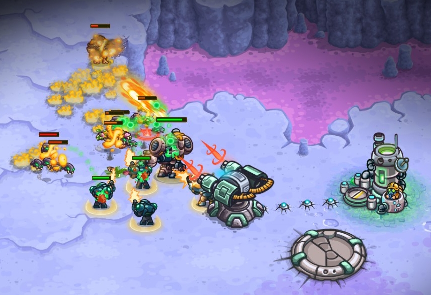 Gameplay-wise it’s a mix between an RTS and their take on the Tower Defense genre. For veterans of the Kingdom Rush series, much will be recognizably beyond the graphics. On each planet you follow a line, going mission to mission, slowly closing in on the final objective. However, at certain points, the game presents you with a side quest. These are usually much tougher, but give you extra rewards, which are very much worth it, and needed I would say. You usually control hero units, and a few other soldiers of some kind and the missions do wary a lot. It’s everything from all-out attacks on enemy bases to boss fights to sneaky segments. Many of these will be a bit of “trial & error” since you never know what the mission script will throw at you next. But if you fail, you get a small reward still, and usually, the tasks are not too time-consuming, it’s a live-and-learn type of deal.