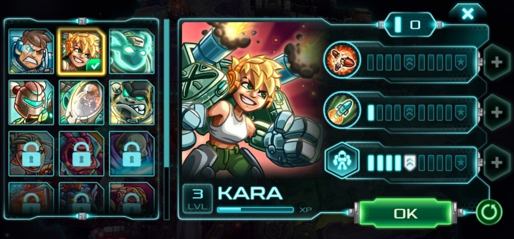 Beyond that, we got the hero units, and there is plenty of them too. Each hero earns experience by going on missions, and everyone got three different talent sections you can upgrade. Every hero is unique and comes with their own special abilities. However, hero units became a bit of a problem for me since all new hero units only come with a few initial talent points, which makes them way inferior to my main guy that was already at the maxed level. It just seemed too much of a risk to try someone else out and losing out on all that great power. It also felt like there was no real good time to try out the new ones since most missions are actually tough. There are no breaks here. It became a bit of a trap. I truly wanted to try out some of the new guys too, because they looked interesting, but in the end, I just stuck to the first hero and best hero I had.