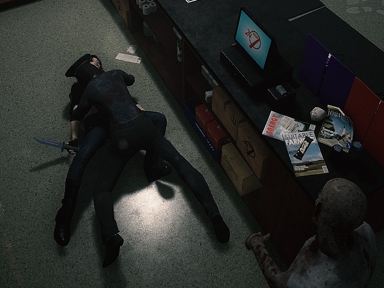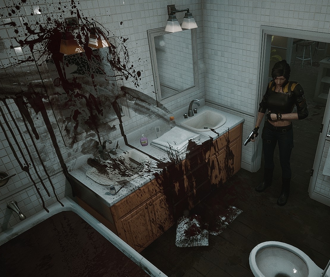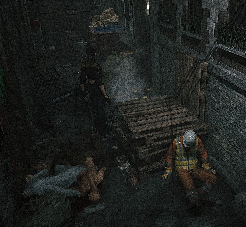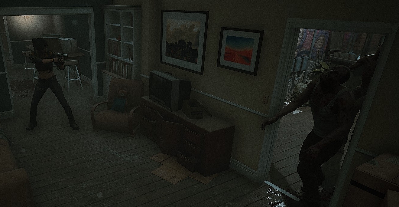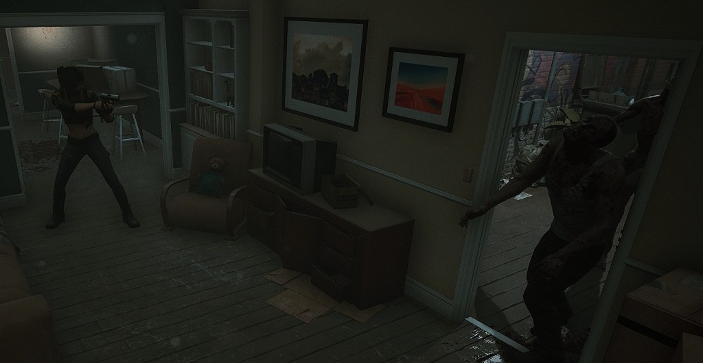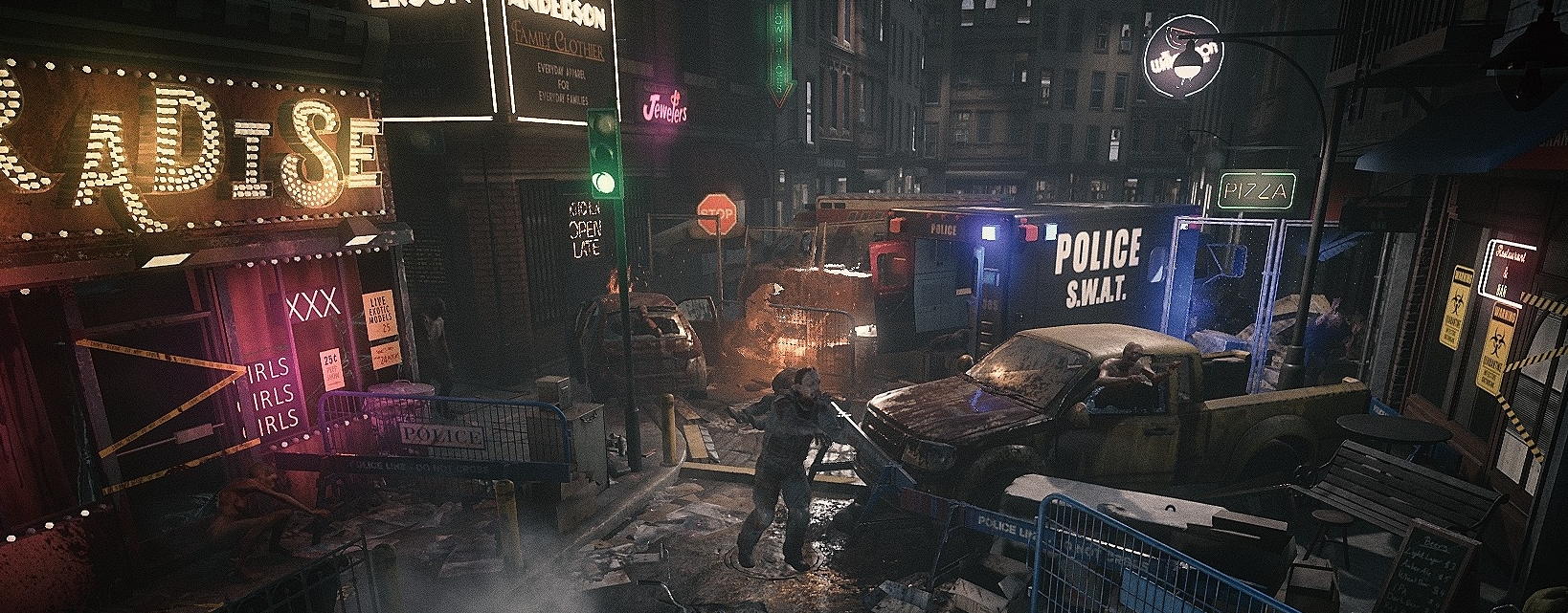 Story-wise you are not presented with much. I picked the girl (Laurel) to play as, and the game starts with you laying prone on the sidewalk unarmed. And much like Resident Evil 2 & 3, you will have to run a gauntlet and dodge zombies, because the streets are absolutely littered with walking corpses that want to snack on your flesh. What strikes me at first is how much the game looks (in the case of the atmosphere) like the city parts of RE 2 & 3. The difference is much higher fidelity of course, and I have a feeling this is what an HD remake of those older survival horror games would look like.
