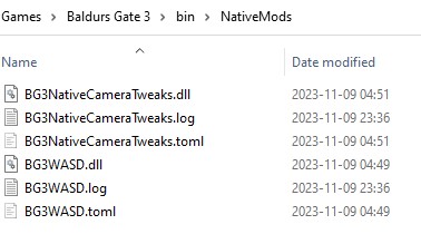 Next up is the WASD mod for camera movement keys, with the addition of “walking”, in which you can activate with the zero key on the Numpad. Download the file and unzip the contents. Copy the files BG3WASD.dll and BG3WASD.toml to the \Baldur’s Gate 3\bin\NativeMods folder. If the NativeMods folder does not exist, create it.