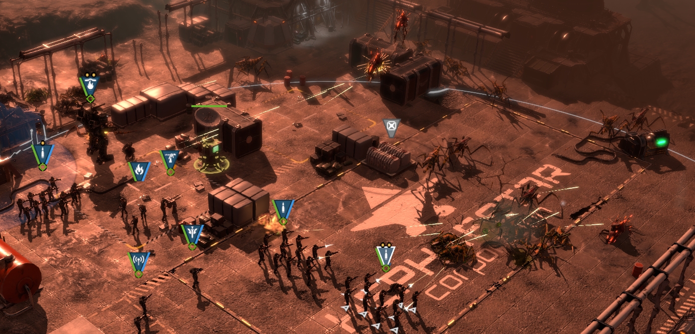 The general gameplay remains the same with a big focus on positioning during the fights, and micro-management when it comes to devastating secondary attacks like throwing grenades. The difficulty is increased compared to the original campaign, which demands that you at least learn some basic micro if don’t want to turn into insect chow. Besides the amount of bugs coming to attack you through every hole and crevice on the map, the beasties have now become upgraded. Many of them got a ranged flame attack (fitting for the setting) now that easily makes human kebabs out of misplaced units. This in large changes a big part of the dynamics when it comes to the game. The original campaign mostly had enemy units that required to get within melee range to do some damage. Bugs, both on the ground and in the air now have attacks that can and will fry your men, which means that casualties will come a lot easier than before. So, you best prepare the black body bags to send home to crying mothers.