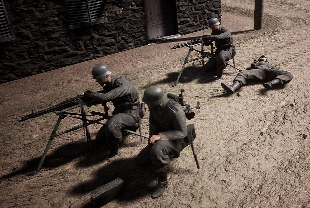 The visual look and feel of Headquarters: World War II is great. It has plenty of detail for being a top-down tactical game. Often when shooting or moving, the game will move in and provide a close-up look at the action. It doesn’t always look clean, but the addition is a welcomed one still. If you don’t like watching these “cutscenes” you can always click past it with a right-click. And I’m glad for that because while it looks cool, I don’t have to see my mortar squad move ten meters down a road all cinematic-like. The presentation overall is top-notch. The UI is easy to understand, and already after an hour or so, I felt pretty at ease with everything. And that goes both for management and tactical combat. The voice acting is suitable for what is being presented, and the music is typical for a WWII game. However, I do feel that the soundscape is a bit limited, both when it comes from direct action like blasting stuff, and the map as a whole. There is very little background sound to give that extra immersion. Sound is probably my biggest issue with the game. There is very little of it, and most of it sounds stock. The British machine gun sounds exactly like the German one. A thing that really shouldn’t be.