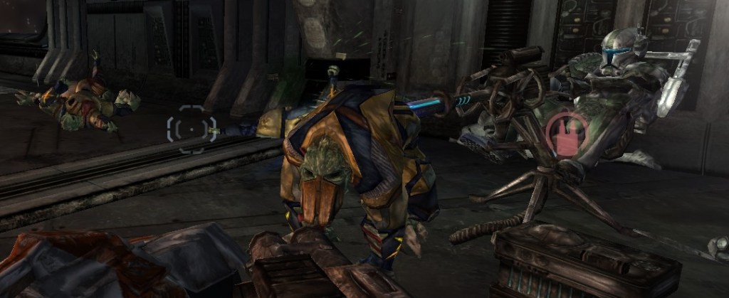 You can say it undermines the tactical aspect of Star Wars: Republic Commando, and yes, you are right. It does in a way. Even so, it works in the setting of the game. I would have preferred if it was more like Mass Effect or The Bureau: XCOM Declassified where positioning wasn’t as rigid, and special weapons worked under a cooldown for the squad. Yet, it is what it is, and while you can move your men to places of your choosing by setting defense markers, your squad is just too incompetent to survive or do damage for the most part. The encounters become very messy, and the AI is a bit on the scripted side, which becomes very noticeable through maneuvering this way.
