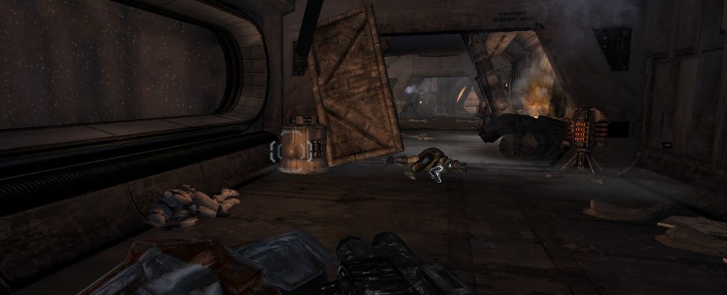 However, as said, it works, and these kinds of first-person games are rare as hell already, so you can’t be too picky. Ironic enough though, one of the best maps in the game is the abandoned cruiser where you play solo for most of the mission. It has great tension, and the enemies that come at you are of a reasonable level. As soon as you are with your squad again, the combat becomes rather chaotic, especially the further you get into the game. It’s charming in a way too, but what isn’t charming, is how lame the last couple of missions are. They were clearly rushed, filled with empty corridors, and a bunch of heavy-duty units to blast through. It becomes a slog quickly, particularly the areas that have zero cover, and no goddamn ammo! Good luck scrapping super battle droids with your dinky backup pistol.