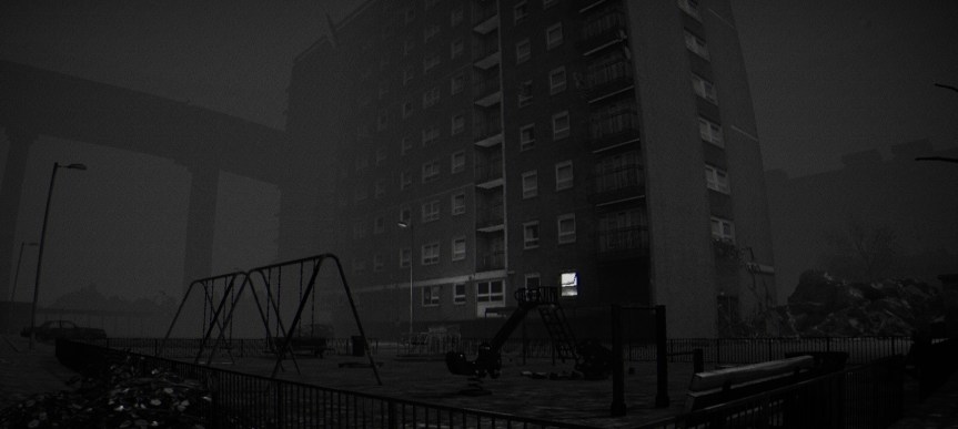 Hollowbody is a futuristic dystopian take on the survival horror genre that takes place in England (I think). While the atmosphere sure is there with everything being gray and decayed, it hit me that some parts of the poorer areas of the British Isles already look like that. If it wasn’t for the shambling undead, it could have been set in our times! Jokes aside, the atmosphere is tight, and can probably be best compared to Silent Hill 4: The Room. It has the same kind of depressive aesthetics of a rotting urban sprawl of concrete and crushed dreams. A similar area that I myself have lived in once, so certain stuff hits close to home and makes things just a little more unsettling. I like.