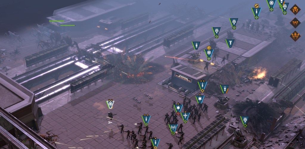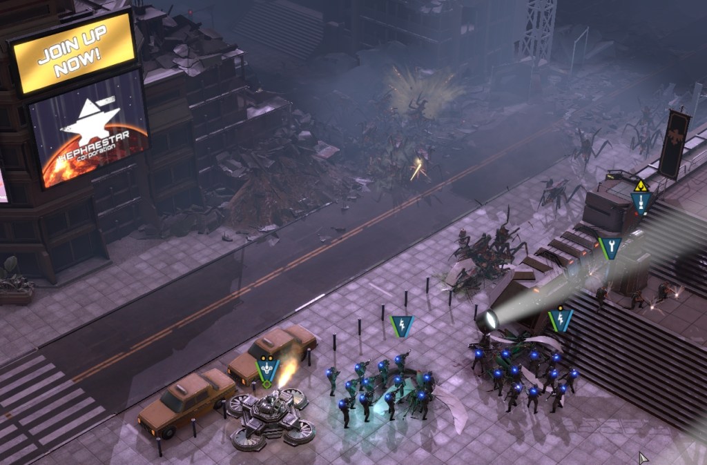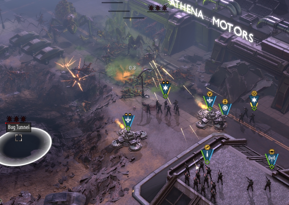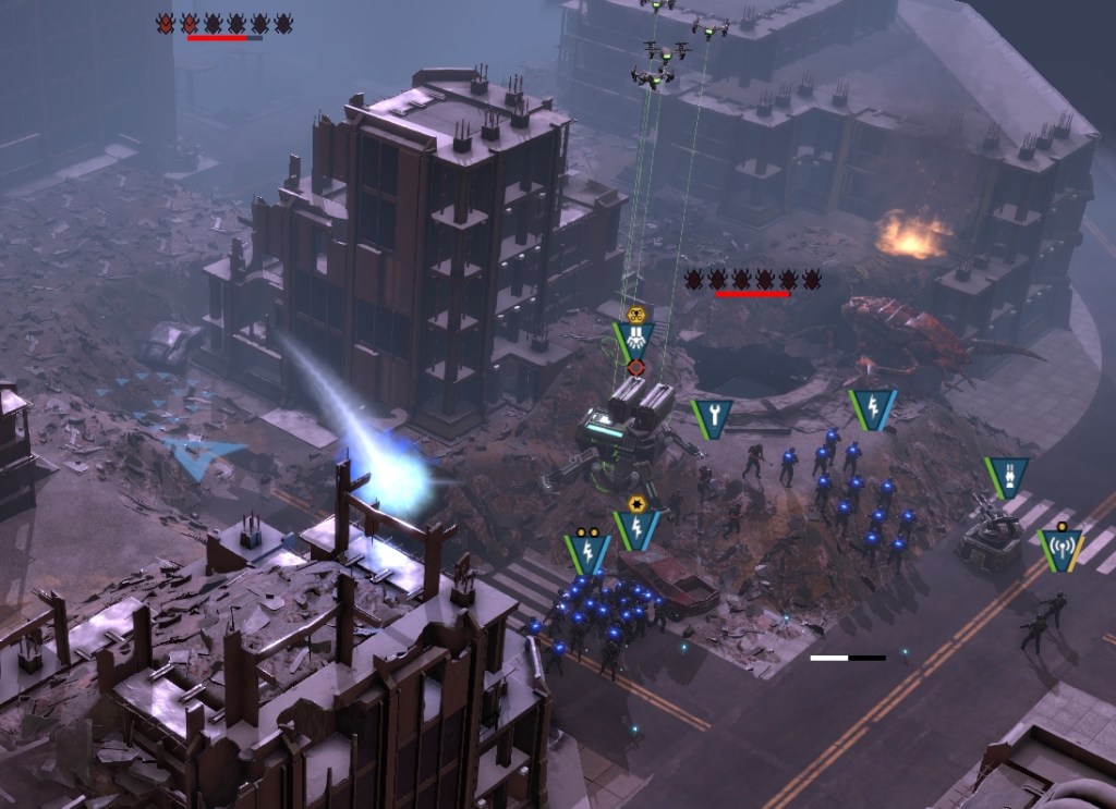 The maps you will be battling on are good, with the whole campaign taking place in the city. You will be fighting among narrow streets, on rooftops with units almost falling off, and huge bridges that have bugs endlessly streaming across. It’s fun, and tight, which can make the placement of troops tricky at times. Using special abilities is required to survive. You will also be tasked with clearing out the sewers, and well, it’s a nasty place unfit for most, except the brave folks of the Mobile Infantry. In the sewer channels, the corridors are even more claustrophobic! It should also be noted (I think it’s a new function), that the game now has a priority target function. It means that you can set your forces to what to target first. Now you can have the rocket launcher guy always target tank bugs, as soon as he sees them, instead of wasting precious time and rockets on cannon fodder insects. It’s a great addition to the gameplay.