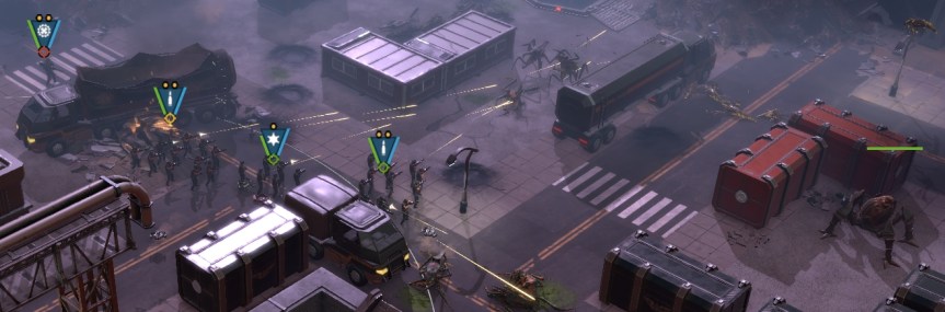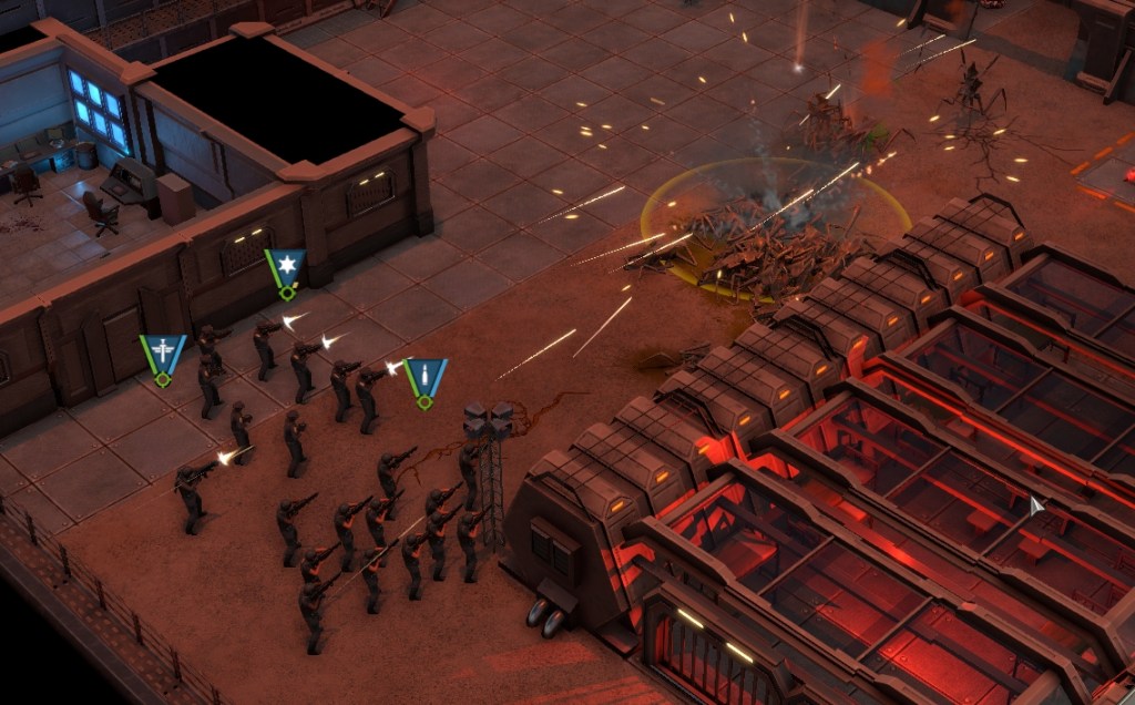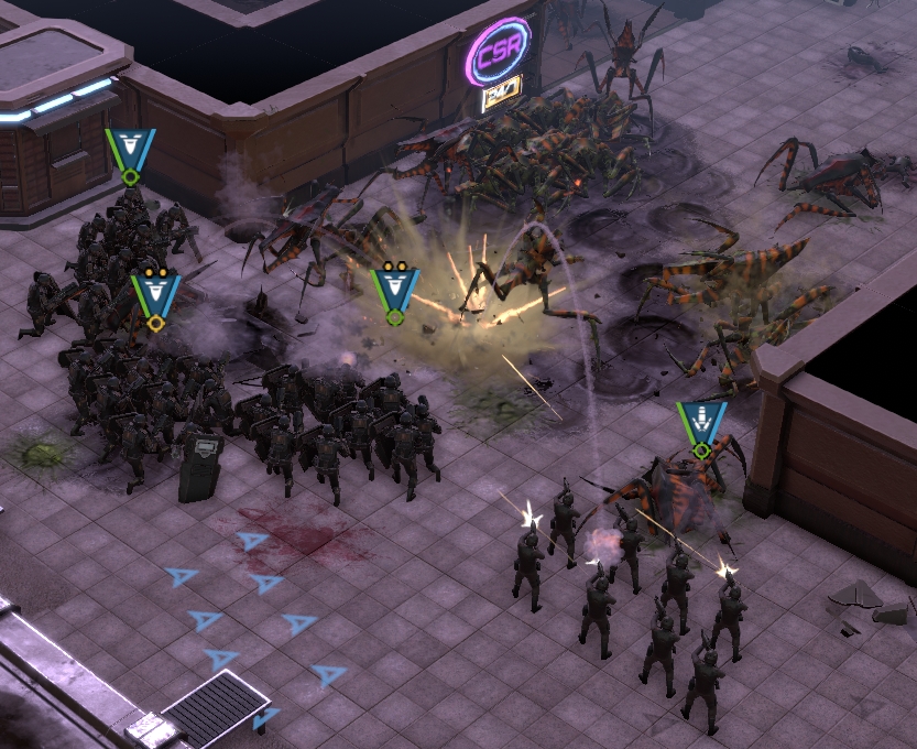 The new campaign starts with a cutscene showing a riot with former soldiers not being too happy with things. It’s a quick interesting insight into the world of Starship Troopers, because otherwise, the only thing we are served is propaganda. I thought we might be fighting rebels of some kind with the police. However, that was not to be. Shortly after the setup, our good friends, the bugs, decide to attack the city. At first, you only control police units, with the female Sergeant Keyes as the commander.