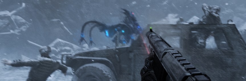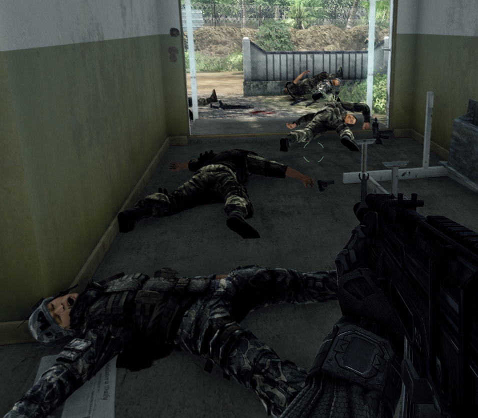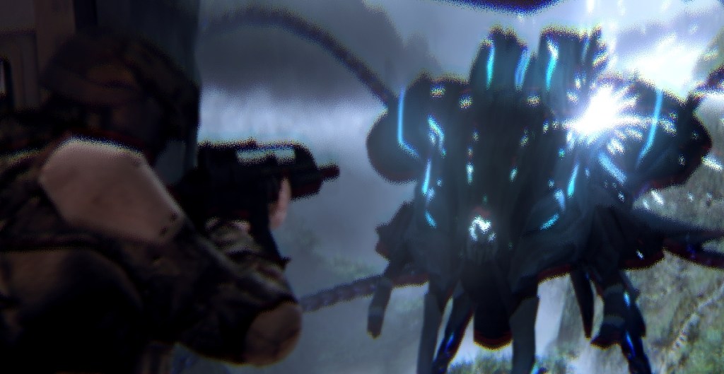 Let’s start by saying that I liked the story. It plays into classic sci-fi tropes that I love. The militaristic tone, hostile aliens that feel alien just enough (not too much, not too little), a cool near-future setting, and escalating events that last throughout the narration. It starts with you and your squad making a halo jump above a hostile island held by the wicked North Koreans. You are not only special forces, you are a step above, you are Raptor team! Equipped in the latest, which is a highly advanced power suit that can cloak and take a hell of a lot of damage before its user gets injured. As things go, stuff can never go smoothly, and you land far from the LZ, forcing you to find your way through the jungle to link up with your squad. Something is off with this island, however. While the North Koreans are your main enemy, they are fighting an unknown force in addition to you, and soon enough you come across bodies of both friendly squad members and Koreans killed by something other than bullets (It’s aliens).
