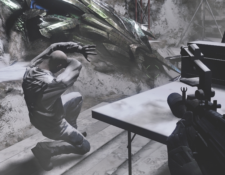 It’s a plot told through radio coms, with a minimum of cutscenes outside the occasional first person view. It makes the experience very immersive and plays into the militaristic setting very well. You start by fighting North Koreans, and the further you make it into the island, the story slowly unravels about what has been going on here. The aspect of the escalating events feels very natural, and when the shit really hits the fan, it sure feels that you have unleashed something extremely harmful for mankind. Sadly, the final part of Crysis feels a bit lackluster. The main event of the story is still cool, but gameplay-wise it blunders into the most typical and boring ending possibly with having a giant annoying boss fight. Actually, you will be fighting two bosses in a row, making the frustration double. Beyond that, it’s a satisfactory tale of aliens and commies and the blasting of these things with a shotgun.