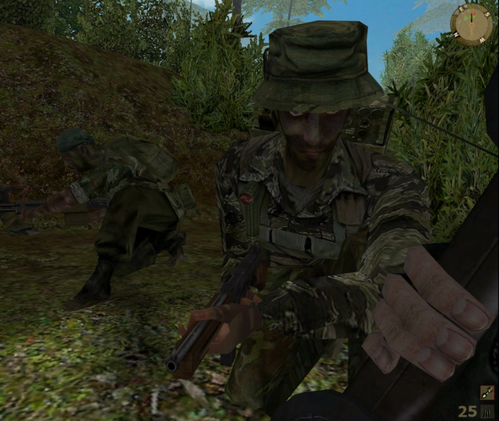 I was ready to leave for Vietnam, smoke Lucky Strikes cigarettes, and shoot commies all day in the jungle, but Vietcong decided otherwise for me. The whole endeavor started out great. My old CD-ROM discs still work, and the patches were easily enough to find. Surprisingly also, it works out of the box for Windows 11. No hassle involved, so it didn’t take long until I was welcomed with cool 60s tunes, and the tropics filled with deadly punji traps. Alas, it was not to be.