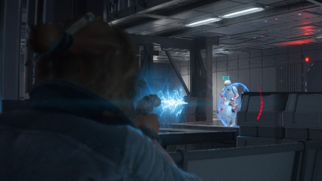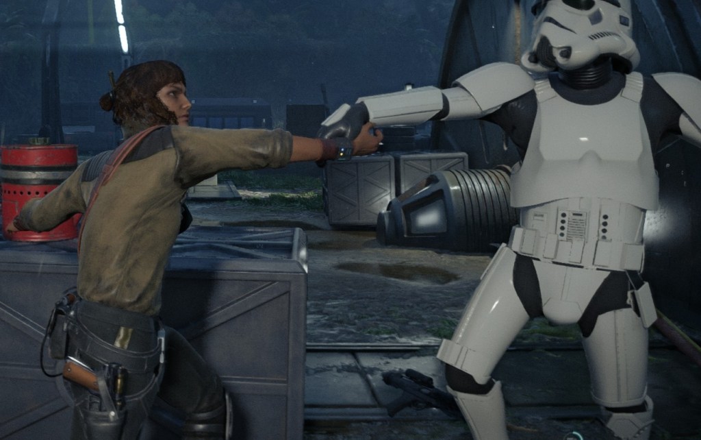 The issue with the stealth comes from the absolutely broken AI, and how the game is designed around getting noticed. First off, the guys you will be sneaking past are dumb as bricks, even on the highest difficulty setting. They do react to stuff, at times, but more often than not they seem totally blind to what’s in front of them. This is something that can get exploited very easily, since their range of reaction is extremely limited. It’s disappointing, since cool AI should (and must) be a staple of any stealth game. However, I can live with subpar AI if I have to, but what I can’t fathom is how “dead” bodies are treated. When you knock someone out with a light bump on the head, even through a helmet, they are treated as dead. So, if an Imperial officer comes across a body, they are always considered dead, as you can hear the officer in question say this. After this, they get agitated for a few seconds and will walk around and look for the perpetrator. And here is where their alarm state ends. If they don’t spot you, they will go back to whatever they were doing, letting the body, or what should be an unconscious body, just lay there in the middle of a pristine Empire corridor. Darth Vader would not be pleased, let me tell you.