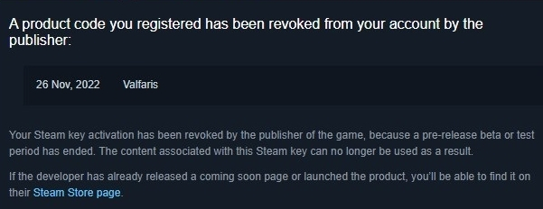 We are back here once again. This time it involves the game Valfaris on Steam. A game I bought in a Fanatical bundle back in 2022. Today, the developer suddenly decided to revoke my game, essentially removing my game from my digital library on Steam. A product that I paid for.
