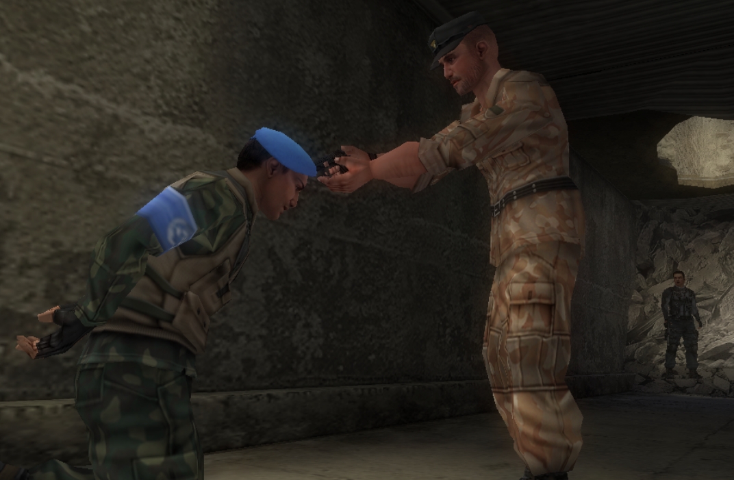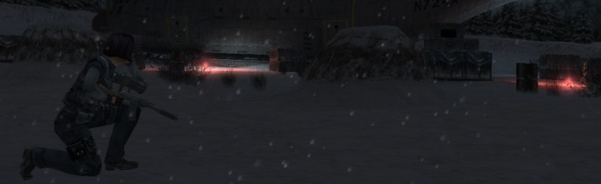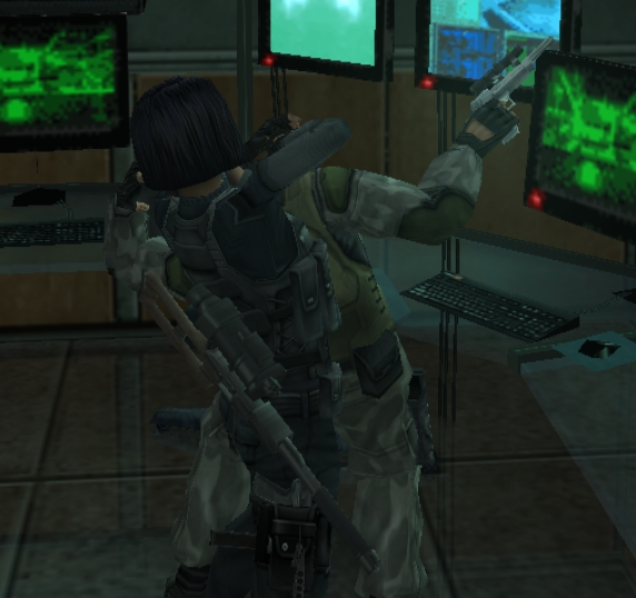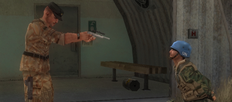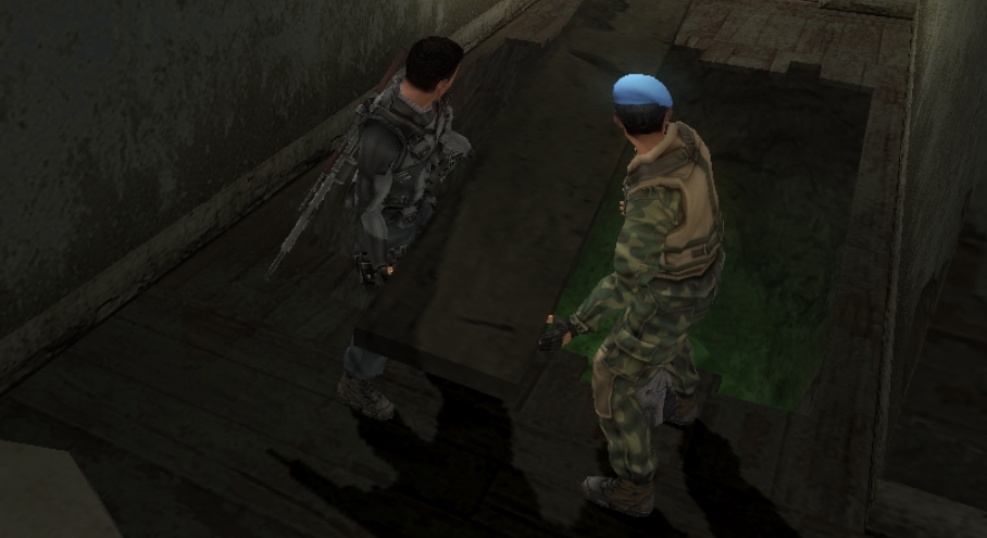 Otherwise, it plays like a typical early third-person cover shooter, but with unrefined and clunky controls. It works, but the camera, and the wall-stickiness can mess with you at times, making you frustrated when you just want to have fun blasting dudes. You will also use special goggles to spot mines and other objects, but since Syphon Filter: Dark Mirror is very linear, you can spot these sections coming up a mile away. It’s very easy to figure out where to go, and do. You will also have to guide and protect different characters throughout the game. These segments are a bit tougher. These civvies will for the most part be unarmed, and can’t defend themselves. Usually, they are a bit suicidal, too, just to make it a wee harder.