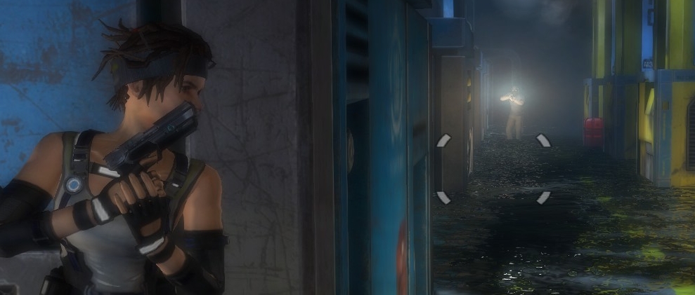 At its heart, Hydrophobia: Prophecy is a third-person shooter and 3D platformer, which is a dime and a dozen nowadays. What makes Hydrophobia: Prophecy stand out, is the water physics that plays into everything you will do, from combat and puzzles, to just navigating the interior of the ship. On its own, it’s very impressive, since it’s entirely dynamic. Rooms will fill up with water, and grenades will cause waves that you can feel, as it slows down any kind of movement. It just feels very real, and scary at times, especially when you have to dive through long corridors with no place to surface for air. It has a very oppressive nature to it throughout the game, even when you are not under any time-pressure. It just feels like the walls can and will collapse at any moment around you, and fill whatever location you are in with an overwhelming amount of icy, deadly water. It’s very cool, particularly in combination with the hectic pacing of the game. It has the sense of a ship under critical duress down to a t.