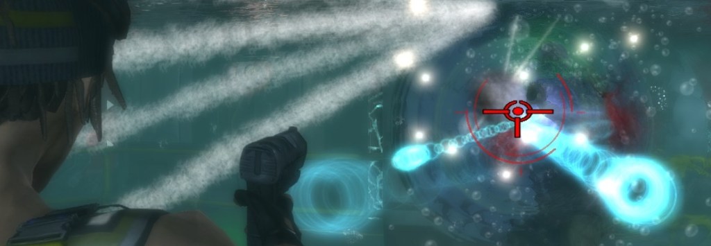 About navigating, you will be climbing, running and swimming, with the water at every turn trying to hold you back in one way or another. The controls feel fine in all regards, but when chaos enters the scene, it can get a bit difficult to orientate yourself. You see, some bad guys can swim and dive, too. So, it can get a bit messy navigating the corridors under pressure and under fire. However, I think it fits with the overall setting of a ship under attack, and well, partially underwater. The long-dives are terrifying by themselves. I wouldn’t say they are hard, as the game for the most part is linear, making it easy to find your way, even during the mayhem. And if you ever lose your way, you can always bring up your little engineer computer that will show you where to go. If you dislike any kind of underwater segments in games, Hydrophobia: Prophecy will probably not be for you, though!