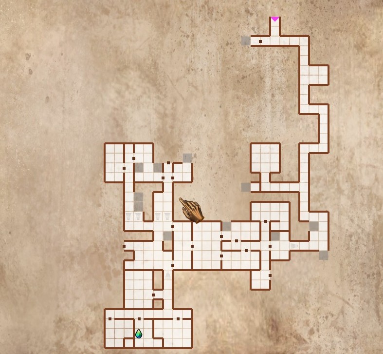 What would a dungeon be without puzzles and secrets? Pretty stale, I say, so there are a lot of them too. While I wouldn’t say the puzzles have been that hard so far, the secrets are all very random and scattered. That’s not to say this is a bad thing. It’s just that they can pop up whenever. Usually, there are some hints. If a corridor without an exit looks suspect, it probably is. One wall I came across was even illusionary, and just by pure chance I traveled through it after noticing I couldn’t touch the wall with the pointer. The game has very satisfying secrets. In other words: they always reward your curiosity. One secret even gave me the map to the dungeon floor. Lucky me, I guess!