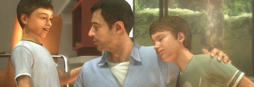 The story of Heavy Rain is essentially a murder story. A thriller where you get to follow 4 characters, all with a connection to the murders at hand. It starts with Ethan Mars, a happy-go-lucky man with two small sons, a good wife and a seemingly perfect suburban life. This life is however destroyed when his son is hit by a car and dies. Ethan puts the blame on himself, as he sees himself as a failure that couldn’t protect his son. His wife eventually leaves him, and he goes from the shiny life of suburbia with a green perfect lawn to a shoddy, broken down house on Crack Street USA. Life isn’t good, and it’s clear Ethan is suffering from a deep depression, but he loves his remaining son. Despite it all, he still tries to carve out a life for himself, until one day…