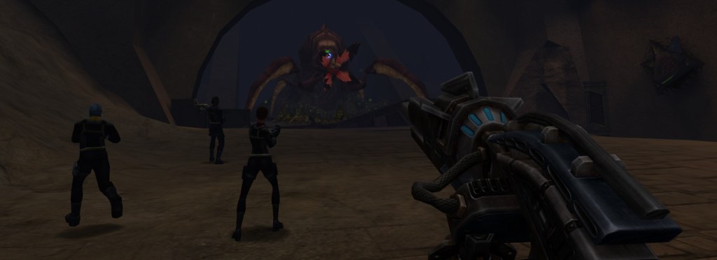 Elite Force 2 also has a bigger focus on having boss fights for each map. I can’t remember many of those from the first game, but here you will fight plenty of odd creatures with a gigantic health pool. I didn’t enjoy this much, as for the most part, you will be alone when doing so. And all the fights involve dancing around until you have used every kind of weapon in your possession to finally be able to remove their large pools of HP. Once again, it feels a bit mismatched to Star Trek, but it’s still not bad. It’s just coming off as bland, and at points tedious and predictable – of course a giant xenomorph will be blocking my path, right at the end.