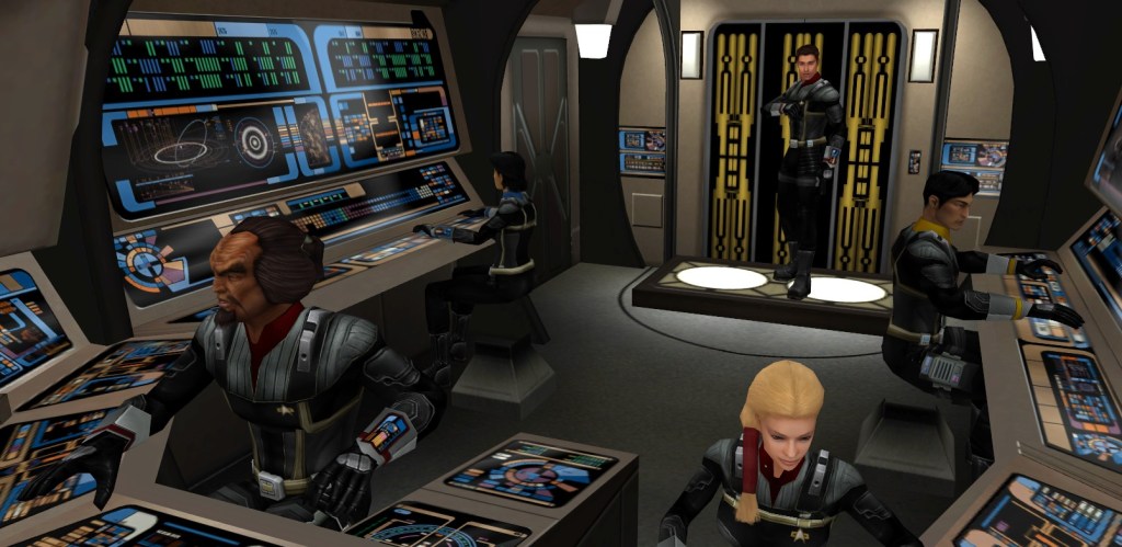 The story by itself is fairly entertaining, except for what I mentioned above. Since the Elite Force franchise finally involves a few more fun races than just Borg and ugly xenos. It should also be noted that the sequel has a much more spooky “Aliens” approach to its atmosphere. They even have a factory planet zone that reminds me of Hadley’s Hope from the movie. It’s a cool setting, but it does feel a bit off for a Star Trek game. They also tried something new with the sequel by adding dialogue choices. But these are rare, and seem to mostly affect who your love interest will be. It’s a welcomed addition. However, it was very undercooked. At least, the crew doesn’t brush you off as an idiot anymore when talking to them on the ship between missions. So, that’s something.
