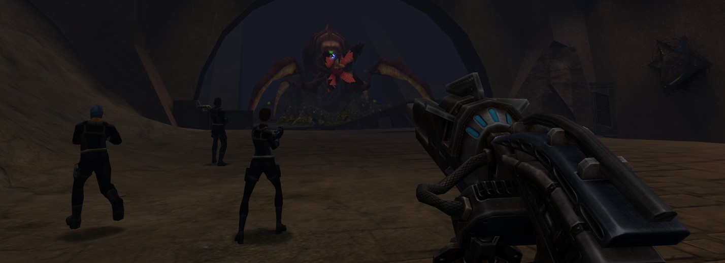 Elite Force 2 also has a bigger focus on having boss fights for each map. I can’t remember many of those from the first game, but here you will fight plenty of odd creatures with a gigantic health pool. I didn’t enjoy this much, as for the most part, you will be alone when doing so. And all the fights involve dancing around until you have used every kind of weapon in your possession to finally be able to remove their large pools of HP. Once again, it feels a bit mismatched to Star Trek, but it’s still not bad. It’s just coming off as bland, and at points tedious and predictable – of course a giant xenomorph will be blocking my path, right at the end.