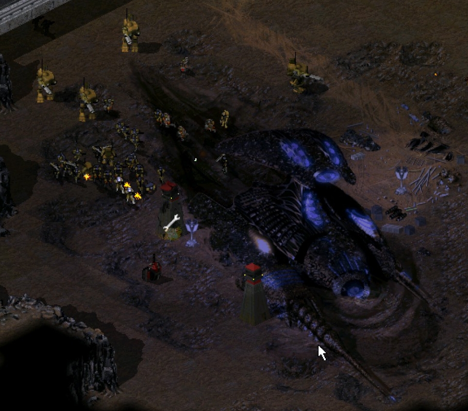 I have already talked about scale, but it’s worth mentioning again, seeing how much it does for the game. The terrific scope also goes into the environment, with vast fields of deadly Tiberium lighting up the dark night with its eerie green glow. Scenes like this are sprinkled throughout the campaign, and it makes it clear how much of an effect Tiberium has had on the Earth’s ecological systems. There are even new life forms to spot out in the spooky wasteland, and they are not friendly, let me tell you! All this comes together in a really solid engine made by Westwood that has aged superbly. Especially, when compared to early 3D engines from the same time period (around 2000). Sprites have an ageless charm, and often enough, scales beautifully with modern screen resolutions.