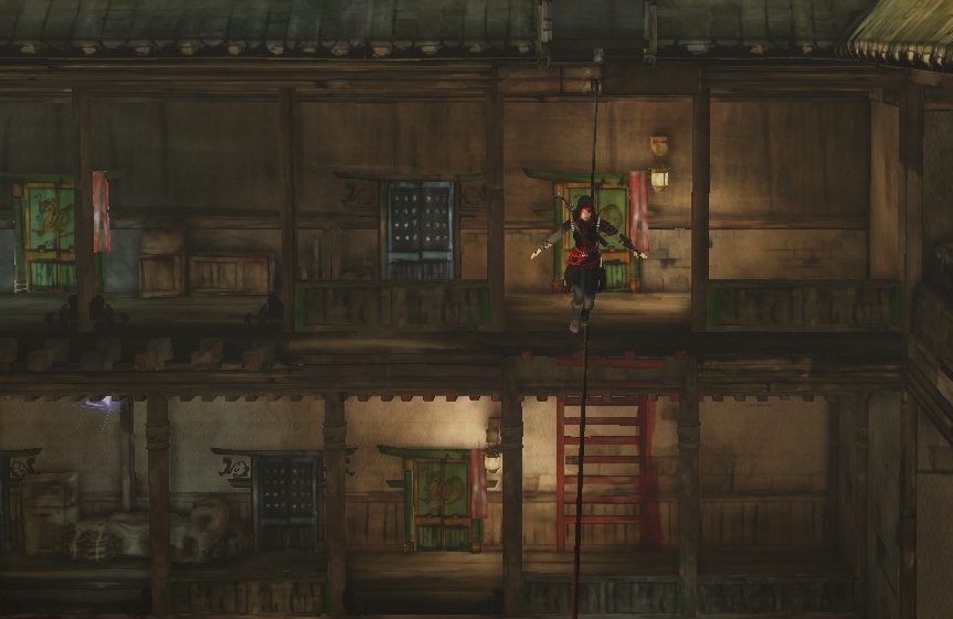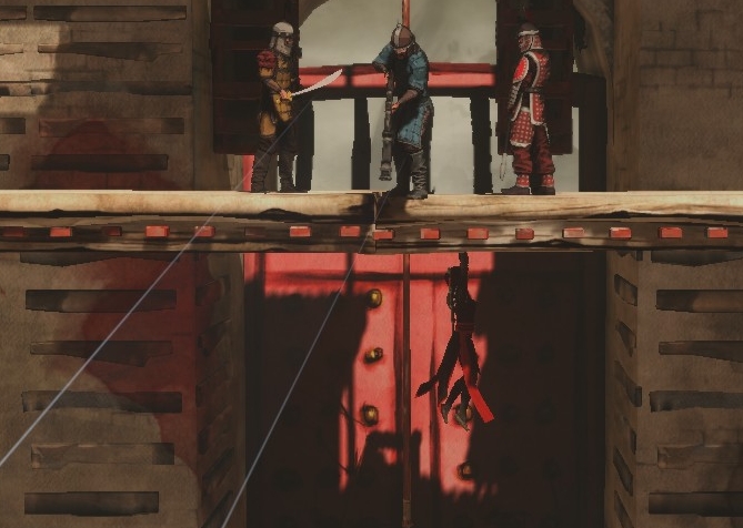 The gameplay is a totally different story. Instead of feeling mediocre like the plot, the gameplay is excellent, thanks to its smooth controls and 2D environment with 3D elements. At its heart, it’s an action-stealth side-scroller, which sounds like a dime a dozen. But what makes it unique is how the game uses both foreground and background in the levels. You will constantly move between them, which opens up different paths to your objective, and of course secrets to get your grubby hands on. These 3D elements also come into play when evading guards, as ceilings, door openings and such work on a 3D plane. It means that you can drop out on the side of the roof, for a quick kill or to make an escape. It works really well, and looks very smooth to boot.