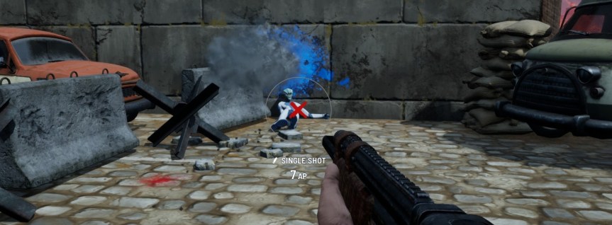 The big difference here from other tactical turn-based games, and X-com-likes, is the first person shooting mechanic. It felt fresh, like finally playing something new to the genre. Now, to be fair, Phoenix Point already uses this system, but it feels much more engaging in Every Day We Fight. Especially with the added avoidance aspect: reflex abilities. On every turn, you can either spend your “reflex” on overwatch (if you have action-points), or save it for when the enemy attack. That means that you are allowed to take a reflex action when coming under fire, like moving into cover to avoid a grenade blast. I greatly enjoyed this mechanic since it makes the combat truly dynamic. The enemy uses the same system, for which you can exploit, of course.