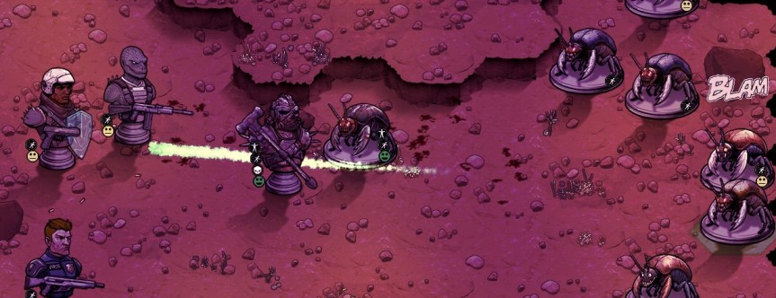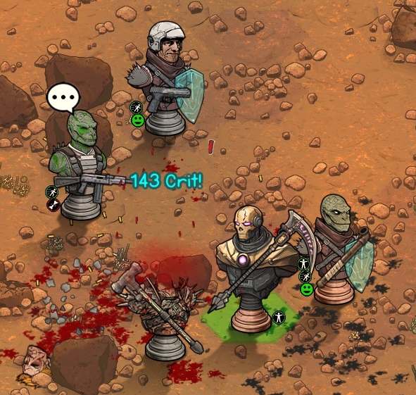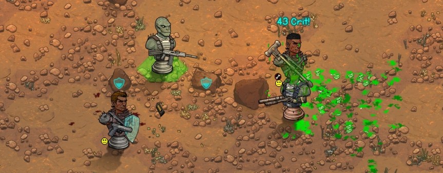 I got invited to the playtest of Space Scum over Steam and after about two hours of destroying lizard mutants in the desert, I’m ready to give my initial thoughts. But first, it must be said that this version of the game is in a really early alpha stage, filled with bugs a-plenty, and a somewhat stunted AI (according to the devs themselves). However, even for feeling a tad spartan, especially in flair and lore, it shows potential for a nice Battle Brothers romp.