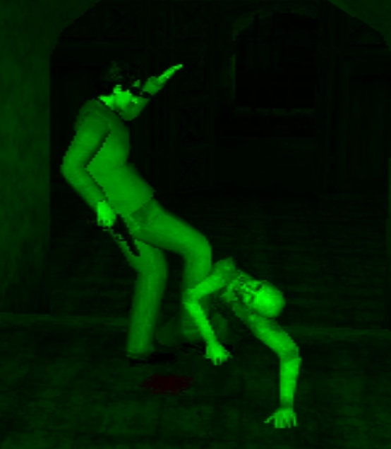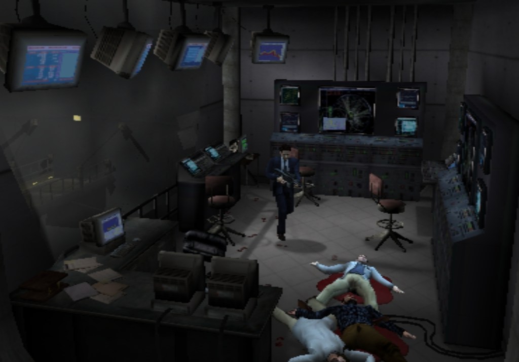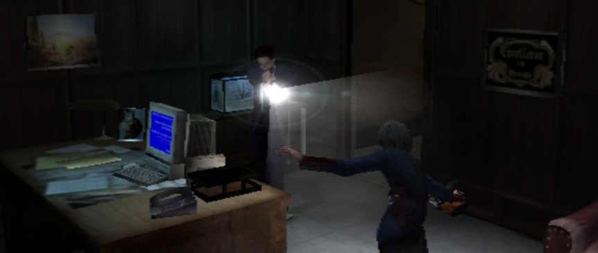 The gameplay and controls for The X-Files: Resist or Serve are pretty standard when it comes to survival horror. Semi locked camera angles, with some sort of tank-controls, but mapped to the analog sticks instead of the d-pad. It works, but it feels very awkward when the camera shifts suddenly. Holding down the d-pad to keep momentum feels natural in those games. But holding the stick to keep momentum is way off here, as it will constantly trick your brain to move the stick to a more natural direction in response to the camera. This will make Mulder spin in place at times, making entering rooms a painful progress. It does take some getting used to.