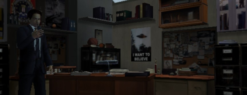 The X-Files: Resist or Serve is a PlayStation 2 exclusive title. This means I played it with the usual, namely: PCSX2. It worked flawlessly right out of the box, but two things to consider. It has native widescreen support, so be sure to activate that in the in-game options. If you try to run it in 60 FPS with a hack, the game will break in certain areas. There is a sofa at one point which can’t be pushed if you run one of these patches, which will stop your progress completely. And some telephone calls between Mulder and Scully will cut away early, leaving you hanging on the plot and how to continue it. Other than that, it runs perfectly fine, locked at 30 FPS. Now, let’s talk about the story.