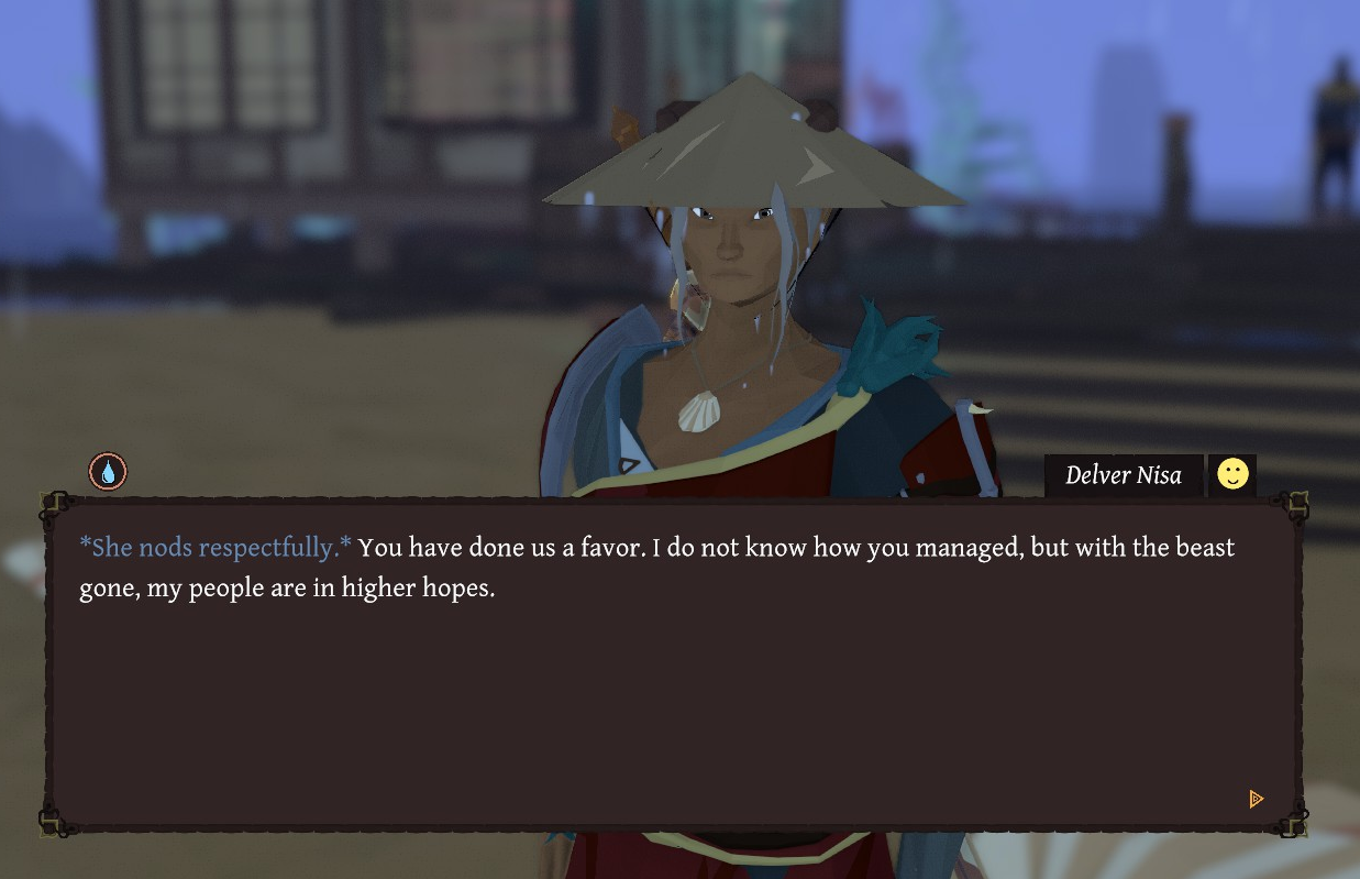 This is some seriously good stuff when it comes to player agency that is actually reflected on the people around you. Every quest done and action taken, seemingly will improve your standing, or lower it—depending on what you do, and who benefits. I, of course, became the hero of the village by freeing the beast peacefully. Sadly, it meant, no infinite tuna for everyone.