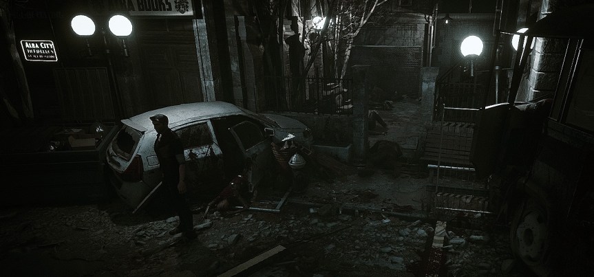 The narrative is probably my main issue in general, beyond what I already mentioned. You play as a police officer, coming to Alba City to look for his girlfriend—and while there, the situation quickly turns into a zombie-infested nightmare. There is something with the dense fog turning regular Joe Smith to irregular Joe “I-will-bite-your-head” Smith. It’s a very nasty condition where the only cure is a bullet to the brain. That’s all fair and good, as far as zombie tales go, but it’s missing the dread from the Resident Evil games. The crucial atmosphere of a city on the brink is missing, even if corpses and destruction can be seen all over. It’s also extremely lonesome when moving through the city, as there are no people struggling anywhere for something that just happened a few hours ago. I came across one cutscene so far, with a woman getting attacked by hungry zombies.
